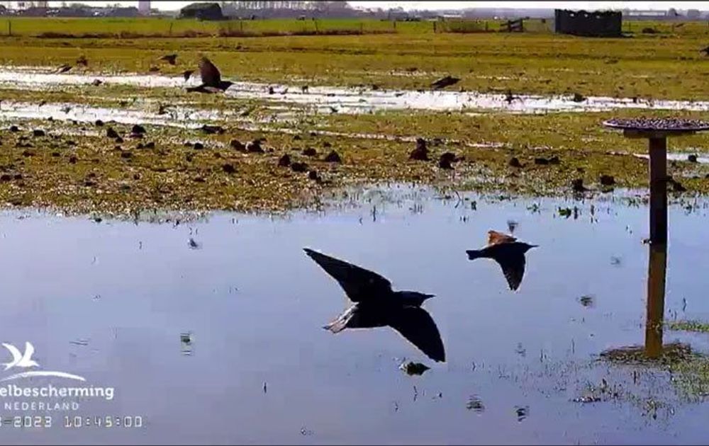 In de ochtenduren zien we regelmatig een grote groep spreeuwen het weiland bezoeken.
