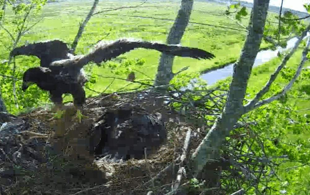 Binnen minder dan een maand gaan de kuikens uitvliegen. Nou ja, kuikens… Ze moeten rap zelfstandig gaan worden. De laatste dagen zien we ze daarom steeds vaker zelf eten en hun vliegbewegingen oefenen. Als ze maar niet van de rand vallen…