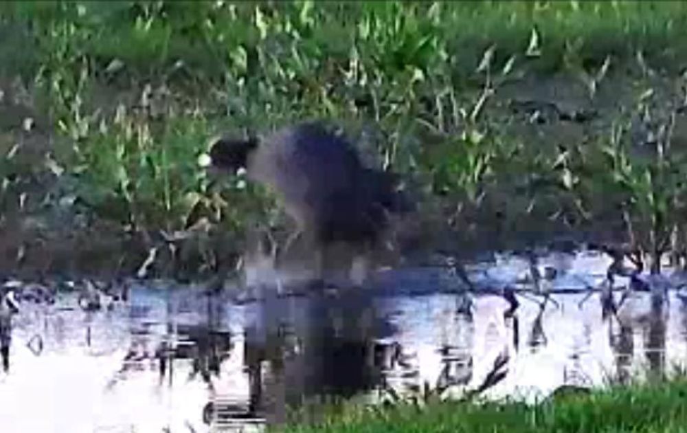 Een meerkoet was gisteravond druk bezig nestmateriaal te verzamelen. Moet je hem niet storen!