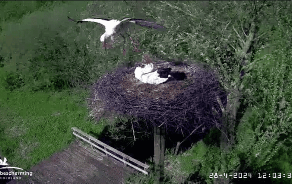 De wind komt vrij krachtig vanuit het zuiden. Op de windkracht en richting moet het paar zich opnieuw instellen. Dit levert enkele mooie start- en landingsbeelden op.