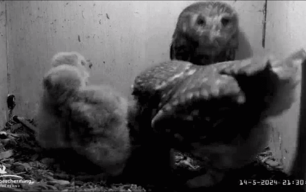 Het verblijf van de kuikens voorin de nestkast levert chaotische toestanden op als Vrouw en Man steenuil tegelijk binnen zijn met een meikever en willen voeren. Daarna verloopt het begin van de meikever-race gesmeerd.
