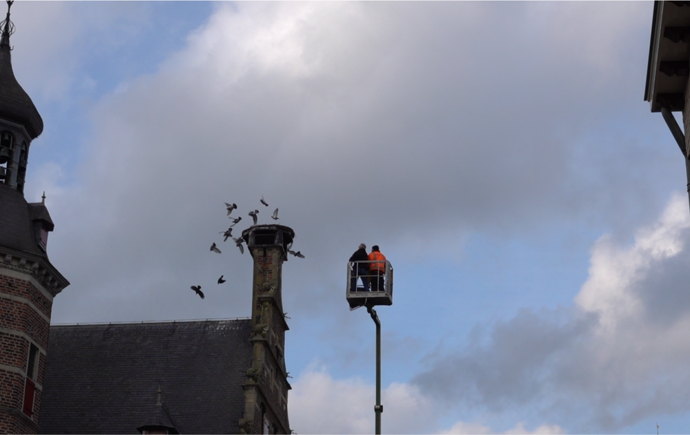 Elk jaar moet het ooievaarsnest voor het begin van het seizoen schoongemaakt worden. Waarom dat is, en dat dit een hele klus is, zie je in deze clip.