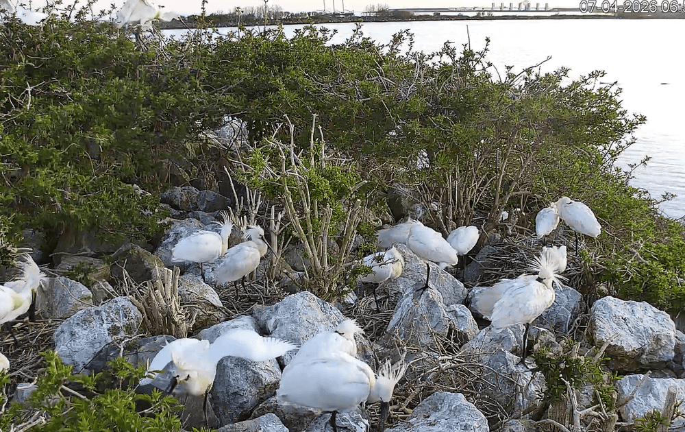 Het lijkt erop dat het drukker wordt bij de lepelaars; méér vogels vechten om de beste plek om te broeden. Alleen dat broeden ontbreekt tot op heden en de oorzaak is bekend: de nog steeds opduikende boommarter.