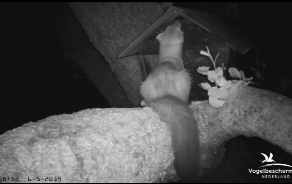 Om 3 uur in de nacht komt een steenmarter langs net als de in 2017 en in 2018. De nestkast bewijst weer marterbestendig te zijn.