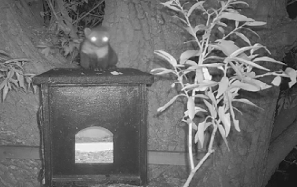 Vannacht had een steenmarter belangstelling voor de kauwenkast, gelukkig was er geen kauw of holenduif aanwezig.