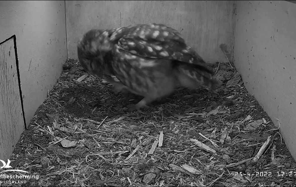 Voor het eerst sinds een week een steenuil in de nestkast.
