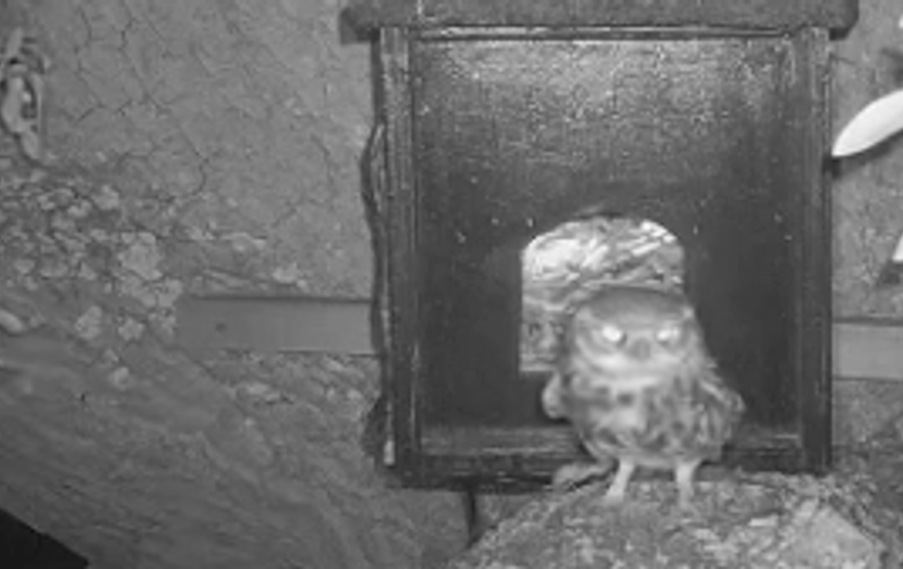 Zaterdagavond was er paniek bij de kauwen in Winterswijk: een steenuiltje kwam even op kraambezoek, maar vrouw kauw stelde dat echter niet op prijs.