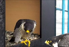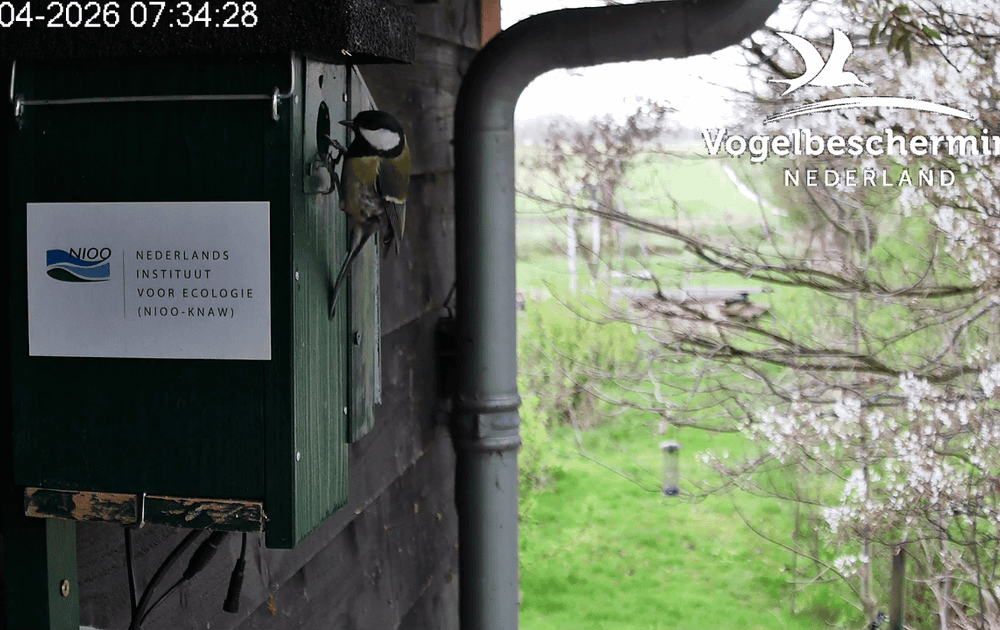 Ontmoet mannetje koolmees! Hij is de laatste dagen vaak druk met tikken aan de rand van de vlieggat. Hoewel koolmezen vaak hun leefgebied met spechten delen, heeft zijn gedrag waarschijnlijk in werkelijkheid niets te maken met de buren.