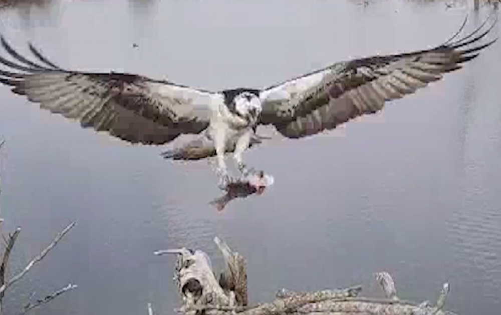 Afgelopen dagen heeft man visarend veel vissen gevangen, die op het nest overgedragen worden aan de vrouw.