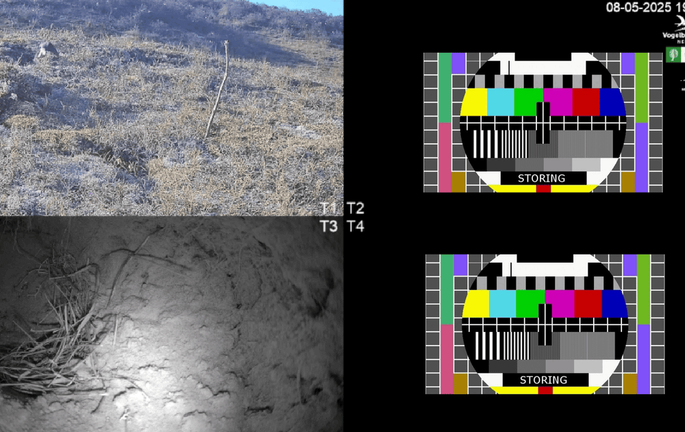 Gelukkig zijn er scherpe vogelaars die kans zien om, ondanks de storing, interessante fragmenten uit de schaarse beelden te halen, zoals op 7 mei een Tapuit op de stok.