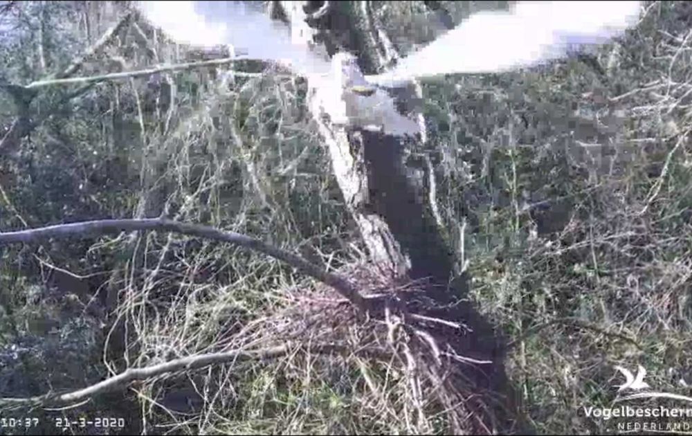 Gelegenheid maakt de dief. De nestcam is (nog) niet definitief bezet. Een Lepelaar ziet de kans schoon!