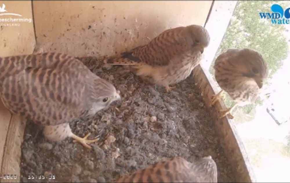 Gisteren vloog het eerste jong uit, maar vandaag kwam ie weer terug. Het kan dus toch. Eerder dachten we dat ze daar de kracht nog niet voor hadden, maar het bewijs is geleverd. Of het om 11:52 ook de uitvlieger was die met man meekwam laat ik aan anderen over. Zelf dacht ik van wel aan de gedragingen te zien