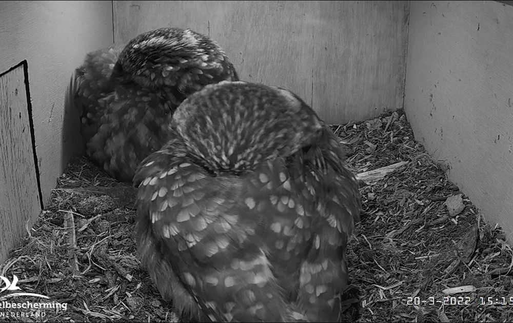 Man steenuil is net de nestkast binnengekomen. De toenadering komt elke dag opnieuw voorzichtig op gang.