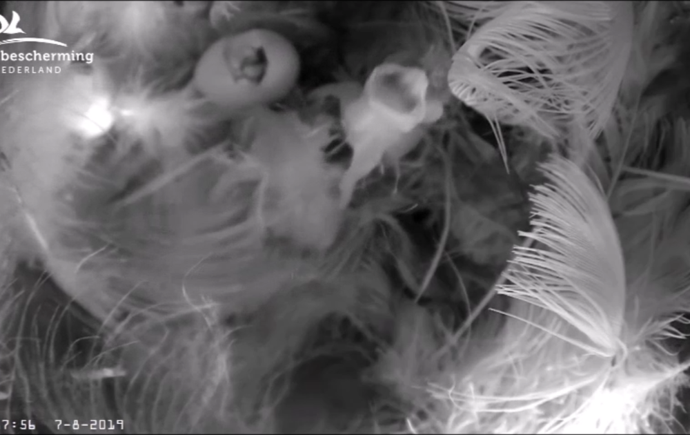 Vanmorgen kwam kuiken twee al uit het ei, en was het alleen nog wachten op nr drie. Maar die is nog steeds hard aan het werk zich van de eischaal te ontdoen