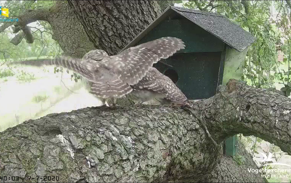 De drie uitgevlogen jongen Rechtspoot, Linkspoot en BOS zwerven nu door het territorium en misschien daarbuiten ook, wie weet? Zelden komen ze met zijn drieën in beeld, maar deze avond wel twee keer.