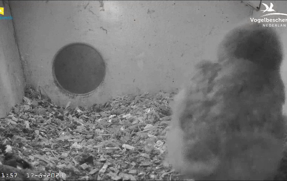 De eerste wandeling van een kuiken door de nestkast. Duurde 6 minuten en direct daarna ging het kuiken nog een keer.