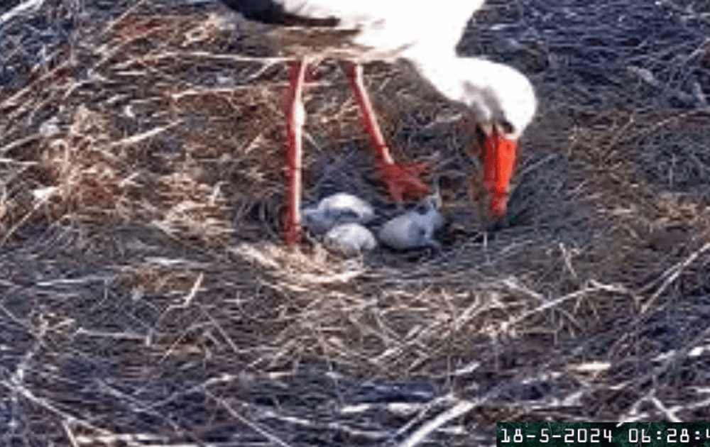 Zelden hebben we zo’n mooie beelden gehad van het uitkomen van een ooievaarskuiken. Door het ochtendzonnetje, en doordat Pa en Ma2 op het juiste moment opstonden, krijgen we unieke beelden te zien.