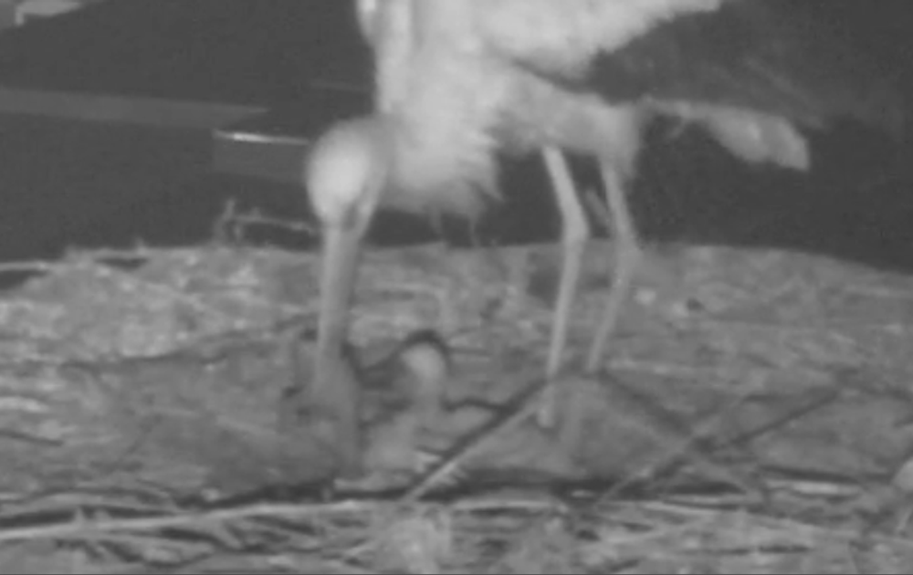 De voortekenen waren er al, kuiken 5 kreeg minder voedsel en verzwakte. Vannacht heeft Ma haar het kuiken naar de rand van het nest verplaatst.