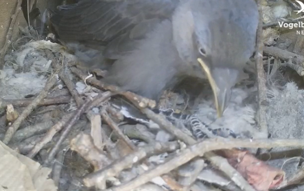 Het jonge kauwtje gaat de kast verkennen, nog een aantal dagen en ze vliegen uit.