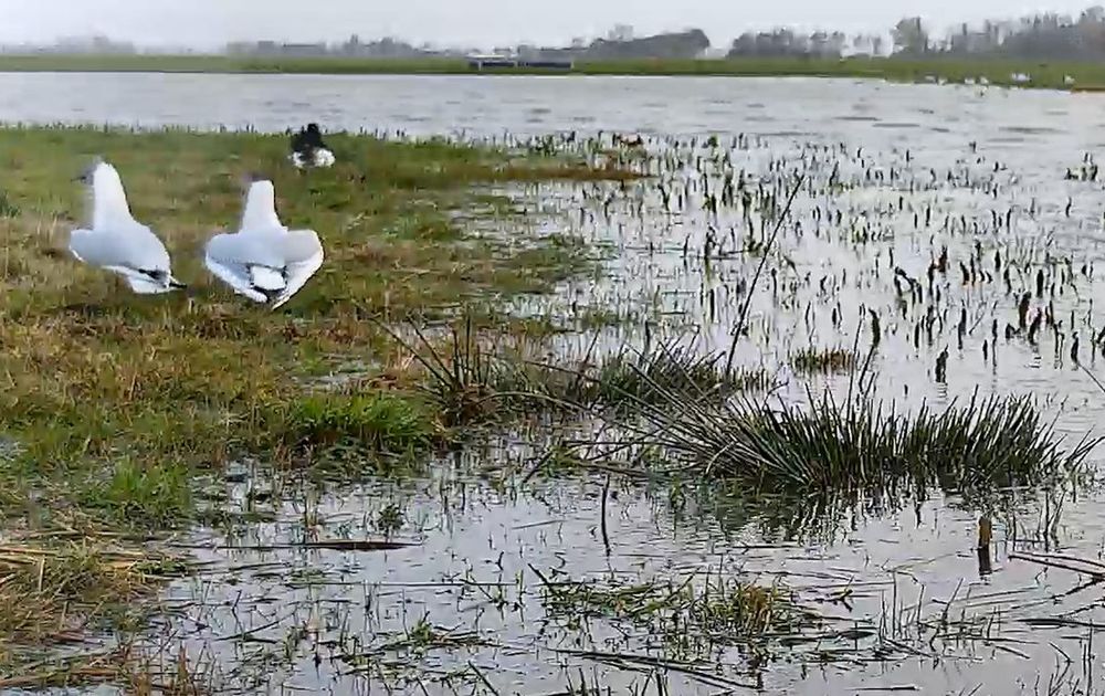 Afgelopen dagen regelmatig gehoord en gezien op afstand. Maar vanmorgen waren ze dichter bij de camera. De kokmeeuwen.