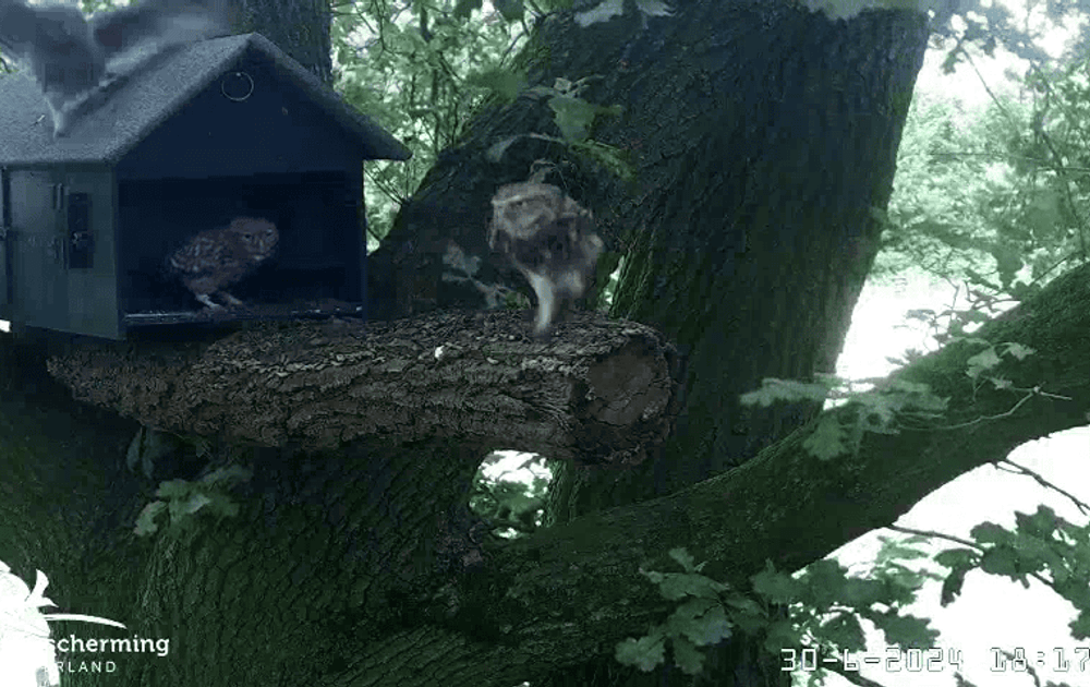 Man steenuil sticht verwarring, Vrouw steenuil heeft iets tegen kuiken Rechtspoot, althans het bedelen van Rechtspoot.