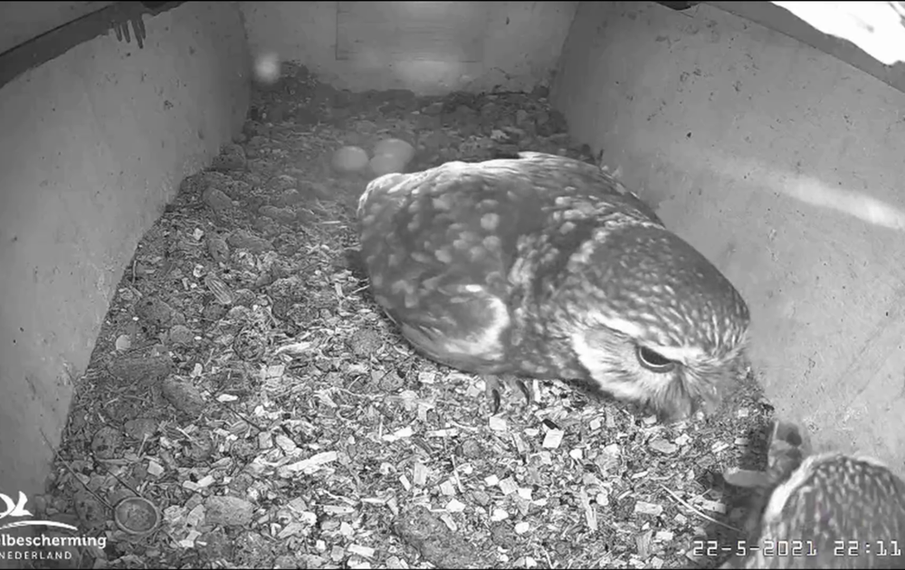 ... en vrouw steenuil broedt voort ...