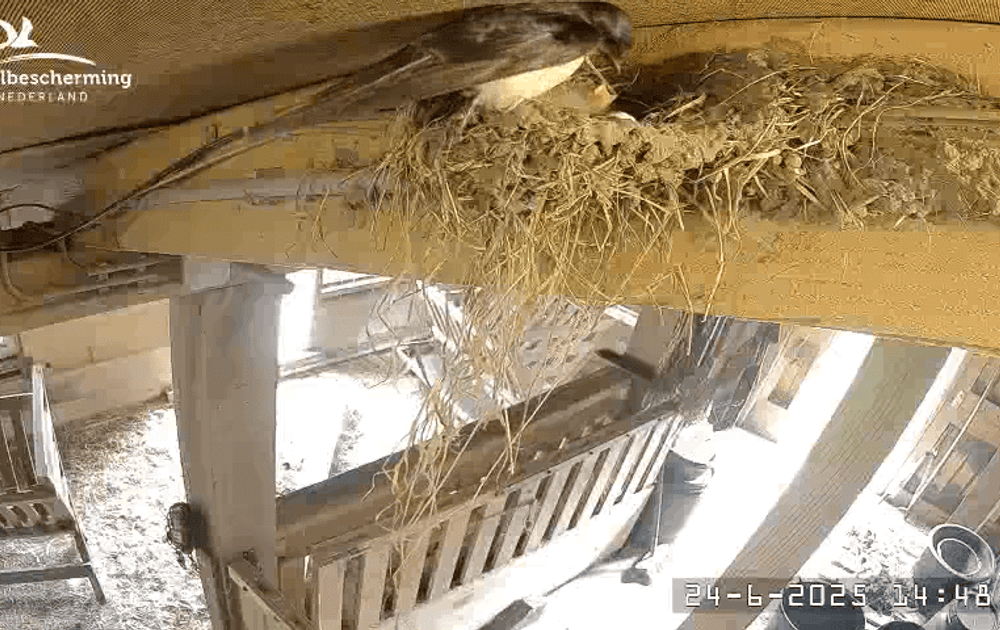 Af en toe zien we een klein kuikentje de kop op steken, zijn het er vier of zit nummer vijf nog goed verstopt in het nest?