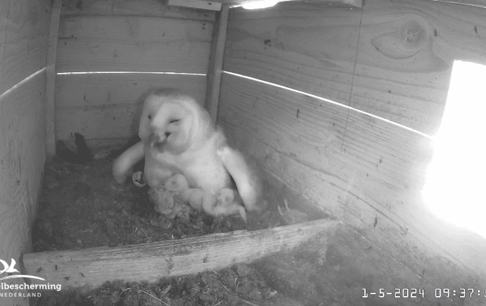 Nadat M aan het eind van de avond nog een moment alleen mocht zijn met zijn drie kuikens, is om 00:43 K4 uit het ei gekropen.