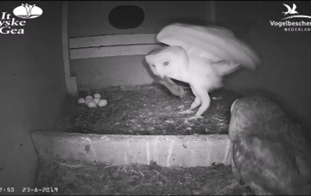 4 Muizen bracht man gisteravond en na middernacht nog 1. Hij zal toch echt aan de bak moeten nu om een voorraadje aan te leggen, want het eerste kuiken laat niet lang meer op zich wachten. Het zou zelfs kunnen dat het eerste kuiken al onderweg is, gezien vrouw regelmatig tokkelt alsof ze het kuiken aan moedigt. Vandaag de 28ste broeddag. Nog ongeveer 2 dagen te gaan dus...