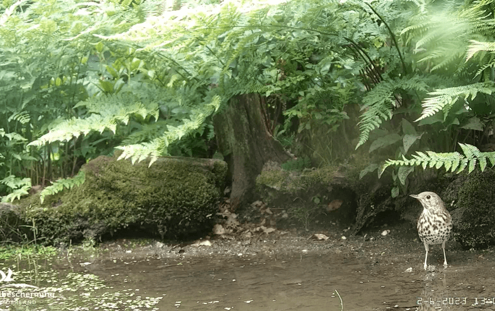 Het is de tijd van jonge vogels. Links de boomklever rechts man vink, 2 jonge pimpelmezen elkaar uitdagend, zanglijster, links merel m en rechts merel v, midden een jonge zwartkop, 5 jonge pimpelmeesjes een mooi gezinnetje, de snel bewegende heggenmus, v merel die water opslokt, rechts een vink man en enkele woelmuizen die op en neer rennen, midden een jonge vink en recht een jonge roodborst, merel v zorgt voor een vervelende vlek, balancerend op de varen een kuifmees en als afsluiter een man appelvink en een jonge appelvink.