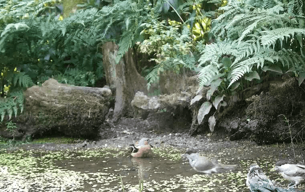 De soortenlijst: Jonge koolmees vink en merel, witte kwikstaart, nachtbezoek woelmuis, vink m jonge merel en onbekende op de cam, jonge vink op stam vink m en op de voorgrond goudvink m links merel die wat kwijt moet, 4 jonge koolmees, jonge roodborst, merel m drinkt, jonge pimpelmees vink en koolmees met op de achtergrond een jonge roodborst, appelvink drinkt met links zwartkop jong, man vink met bedelend jong, jonge roodborst op stam en 2 jonge koolmees, jonge zanglijster samen met goudvink m, merel v en jonge appelvink zwartkop m landt rechts, merel v verzamelt nestmateriaal, jonge koolmees merel m jonge vink vink m en jonge roodborst op stam, 2 jonge vinken en landende merel m rechtsonder pimpelmees en helemaal rechts een glanskop, tenslotte grote bonte specht v en merel m, hopelijk kunt u het nog uit elkaar houden, veel kijkplezier.