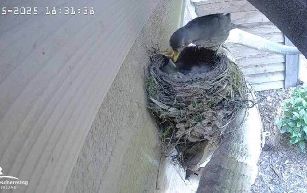 De merel kuikens groeien als kool. Maar ja wat verwacht je als beide ouder contstand paraat staan met weer een nieuwe lading voedsel.