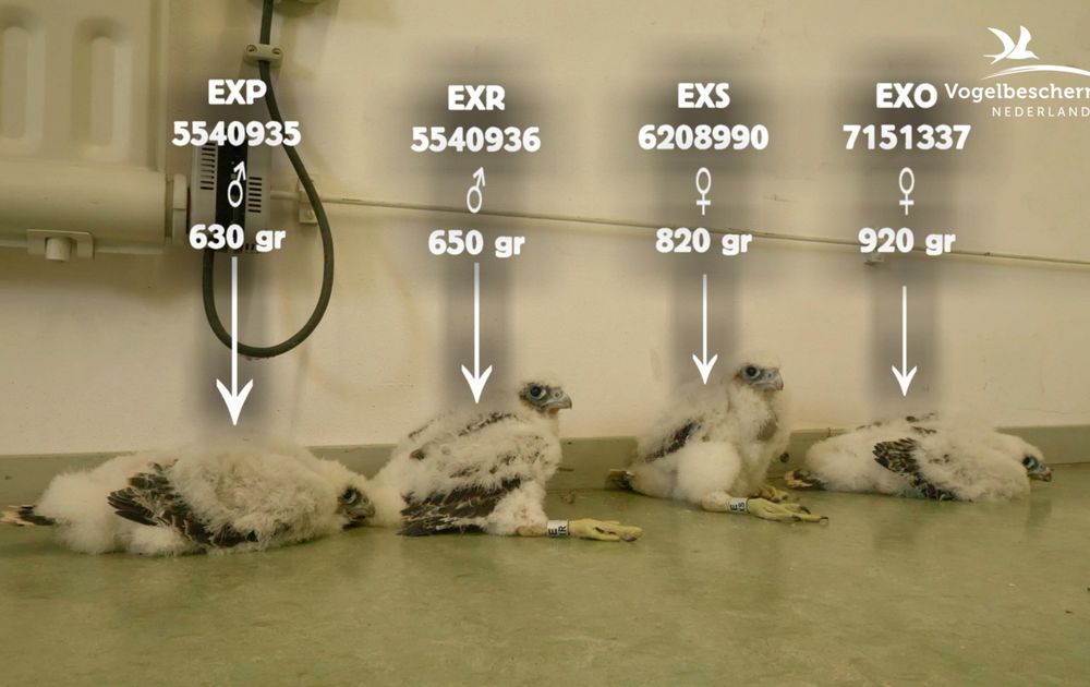 Ik mocht gisteren bij het ringen zijn om te zien hoe dat gaat. En Peter vertelt mij wat er allemaal gemeten wordt en waarom de slechtvalken twee ringen krijgen.