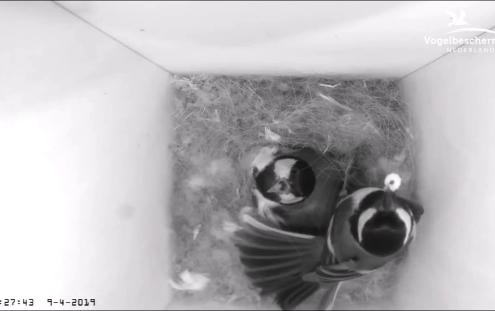 ...of uitlokking door man? Vanmorgen legde vrouw haar vijfde ei. Ze is bijna de hele dag buiten, want broedt nog niet, en krijgt daarom ook nog geen snacks in de kast. Tot vanavond, als ze al in dromeland is... Maar of dat hapje voor haar bedoeld was....