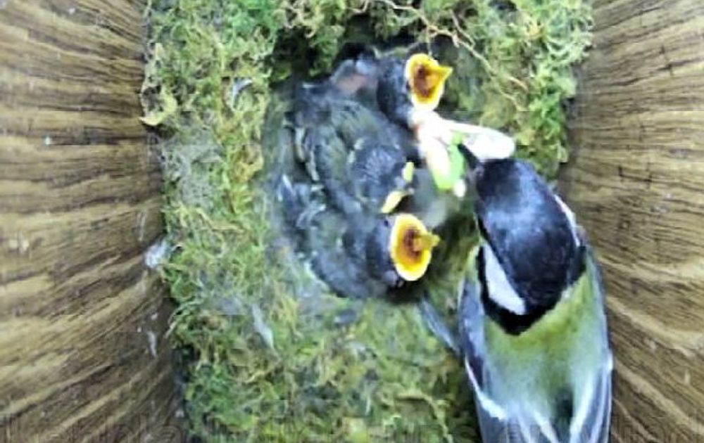 Voeren is topsport, de ouders vliegen af en aan, soms zitten ze elkaar in de weg. Op dit moment zien we ook groene vlinders, eikenbladrollers, een nachtvlindertje binnen gebracht worden soms nog fladderend. Als je goed oplet zie je ook de oogjes af en toe open gaan op een spleetje