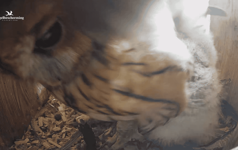 De kuikens groeien als kool en de ruimte in de kast wordt daardoor steeds beperkter. Voor vrouw bosuil is draaien al een uitdaging.