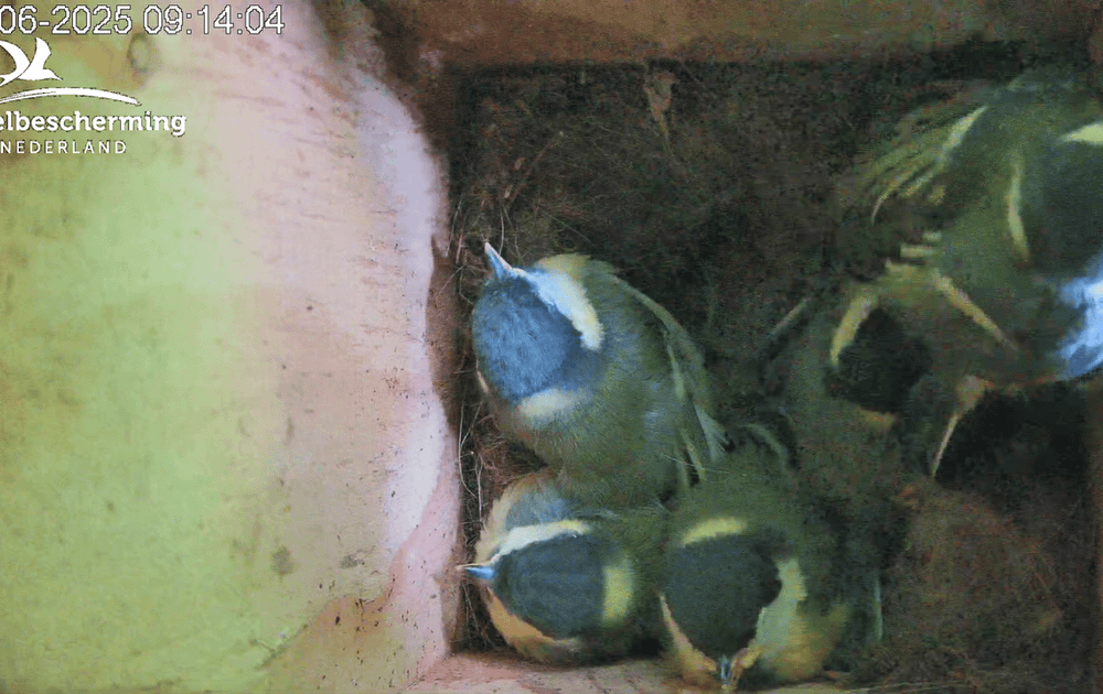De koolmeesjes zijn zo goed als klaar voor het uitvliegen.