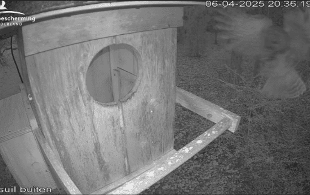 Eerder dan de volgers van de bosuilen gewend zijn, kwam man bosuil een prooi brengen: hij kwam mooi aanvliegen En.....een vroege vogel dus.