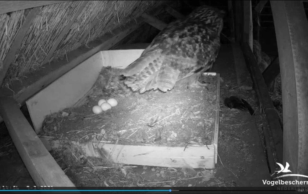 Op haar inmiddels bijna gebruikelijk tijdstip van ca kwart over zes, verlaat Vrouw Oehoe het nest