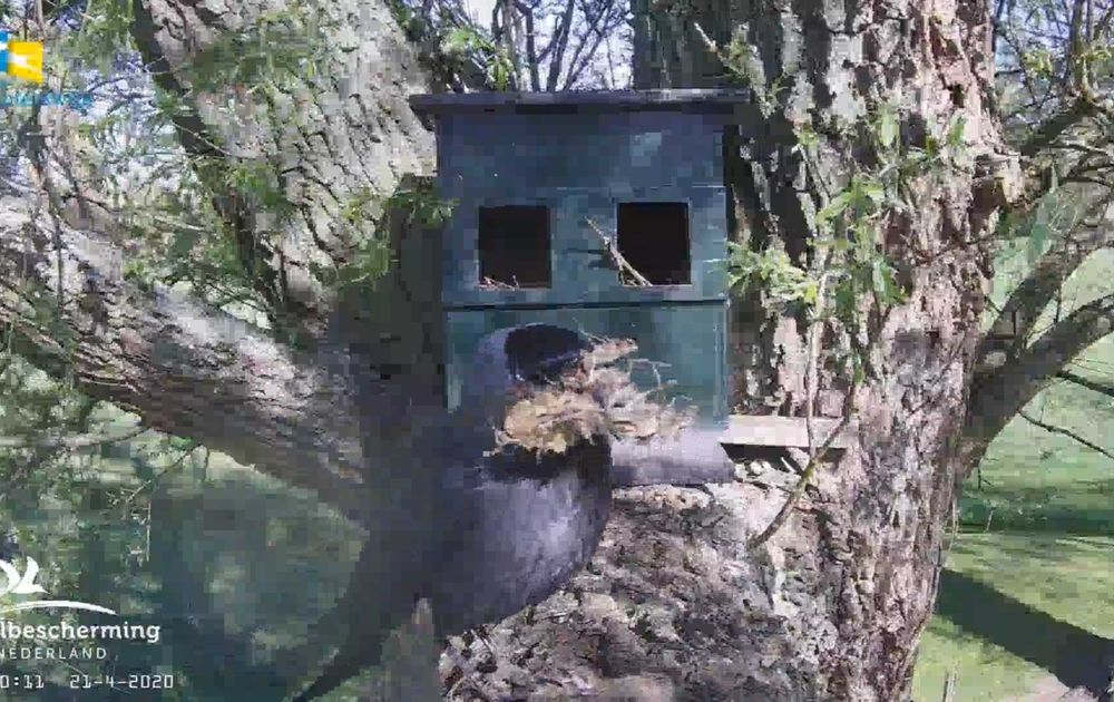 De kauwen lijken vandaag een mooie rustige dag tegemoet gaan. Man heeft nog veel zorg voor het nest en Vrouw. Halverwege de middag gaat het dan toch weer even mis!