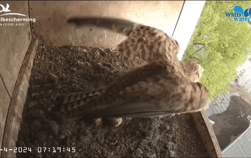 Vanochtend vroeg moest vrouw torenvalk flink optreden. Want als je te dicht bij komt.......Dat moest een andere torenvalk bekopen.