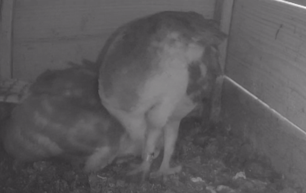 We zijn stiekem allemaal in afwachting of er nog een 8e ei wordt gelegd...maar dit korte fragment van vanmorgen willen we graag even tussendoor delen: vrouw kerkuil is met man aan het kroelen, terwijl man het alleen maar op een van de muizen uit de voorraad heeft gemunt. Dan ontdekt ze dat man een mooie ring aan zijn poot heeft. Zo'n ring wil zij ook wel!