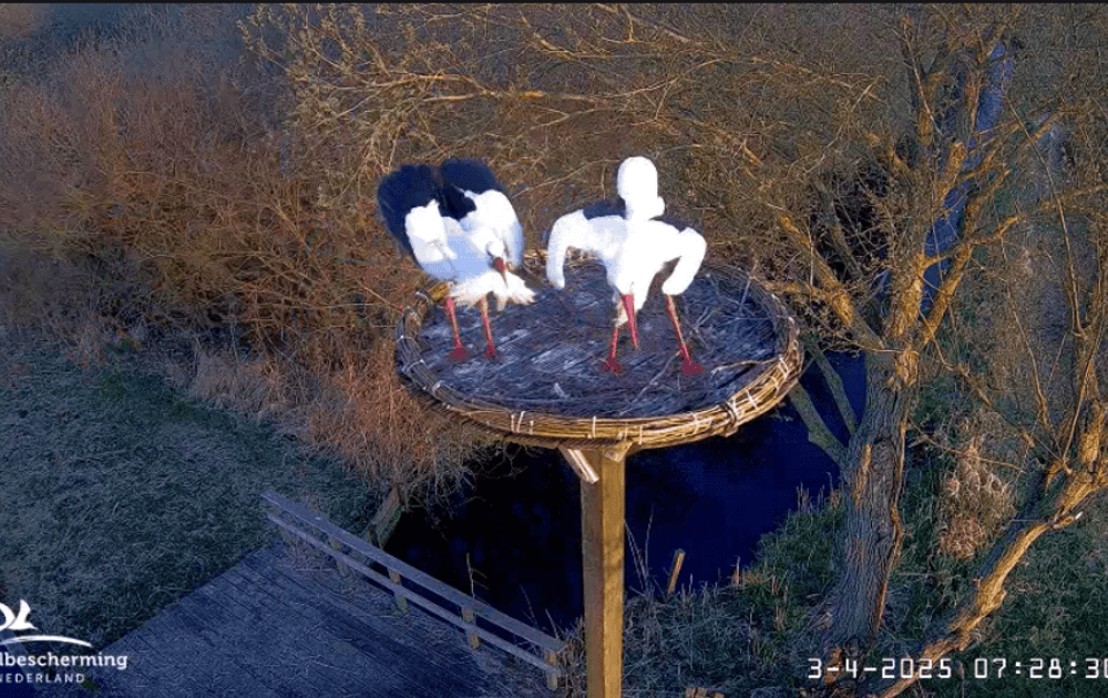 Wat opvalt is dat er zeker een paar keer per dag een ree onder het nest doorloopt. Zou die zich, net als wij afvragen waar de ooievaars zijn?