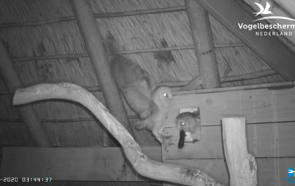De uilskuikens wachten op een prooi, maar ook het team kerkuilen en veel kijkers wachten  op het moment dat de uilen de kast verlaten en de hooiberg hun nieuwe speelplaats wordt.