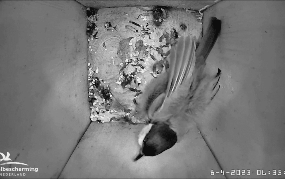 Terwijl de merel al volop zingt ligt de koolmees nog te slapen. Eindelijk gaat zijn wekker af, maar hij lijkt nog een paar keren op snooze te drukken en er is ook tijd voor verenverzorging. Maar wanneer het tijd is om te vertrekken is hij in een ogenblik weg.