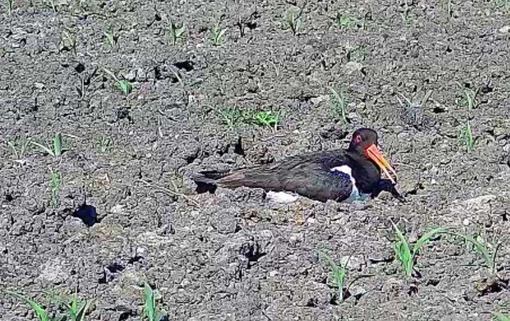 Op deze eerste zomerse dag is het warm. Niet alleen door de zon van boven, maar ook de nog relatief kale akker biedt geen beschutting en de uitstraling van de grond