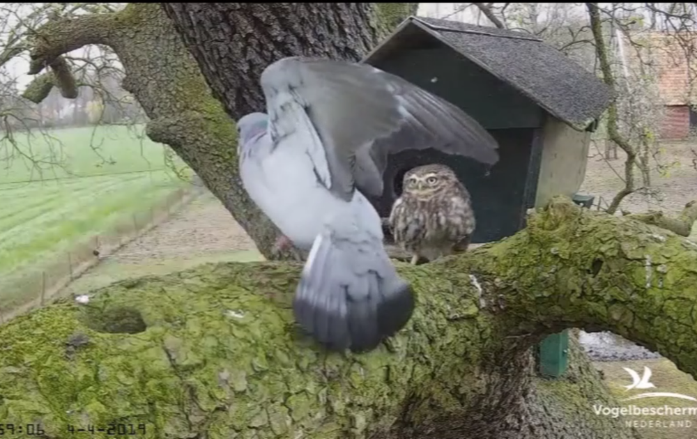 Man steenuil heeft het druk met het handhaven van de orde voor de nestkast. Moet hij zwaardere wapens hebben?