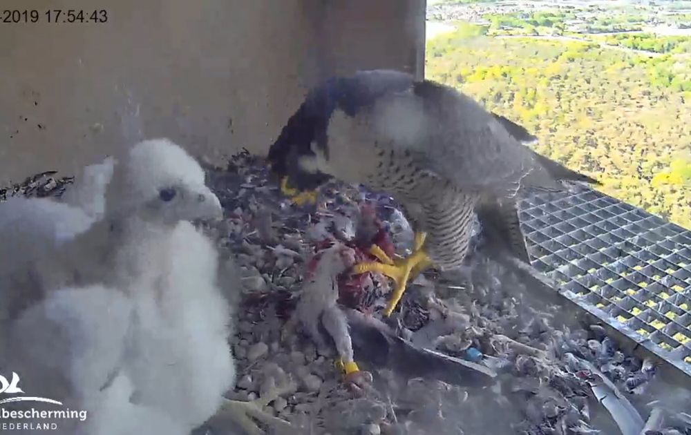 De kuikens zijn vandaag 2uur lang gevoerd, waaronder 2x een duif.