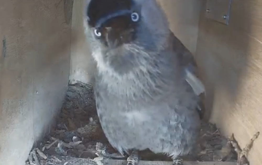 De kauwtjes zijn druk bezig met het inrichten van het nest.