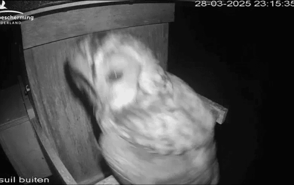 De enige afwisseling in dat patroon: bezoek weer van een vreemde bosuil; wel even schrikken!